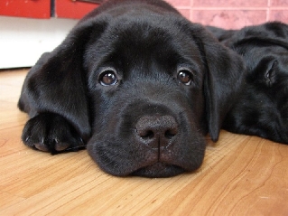 Сквозь щенка он смотрит томно,