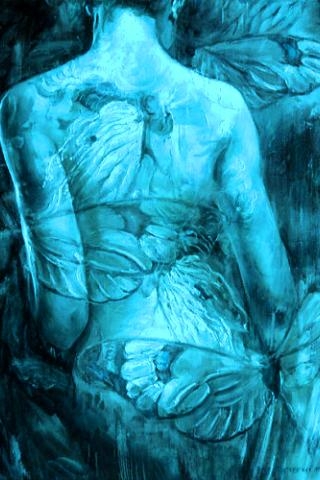 стаей ярко-синих бабочек -