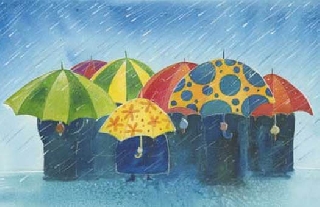 Зонтики в небо у редких прохожих,