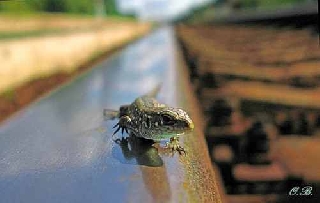 По сизой рельсе ящерица нервно