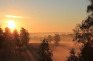 Заблудившись в ветвях берез.