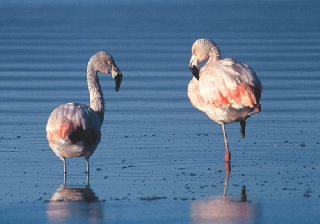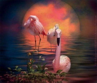 У воды танцует розовый фламинго,