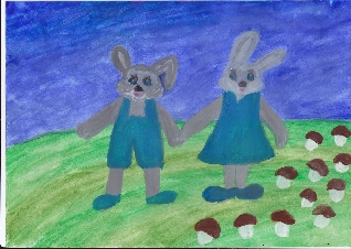 А зайчишка, улыбаясь.