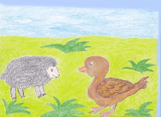 Подружился гусь с овцой.
