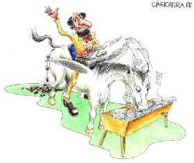 Поэт, подкинув корм своей лошадке,