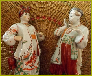 Геннадий Дергачев. Ссора. Инсталляция из фарфоровых статуэток «Одарка» и «Карась» Киевского экс. кер.-худ. завода.