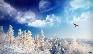 Туда,где пышный лес,мороз и белый холод.