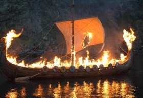 Скандинавы ( да и наши предки славяно - арии, ( описано Ибн Фадланом ) практиковали огненное погребение в ладьях... Можно посмотреть картину Генриха Семирадского - " Похороны знатного руса "...