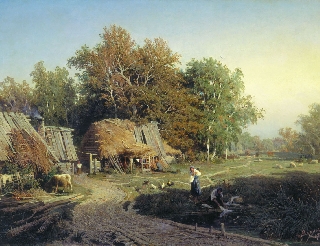 деревенькой у реки.