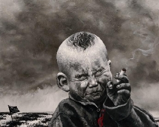Паренёк на ней серьёзный, на лице морщинок слой.