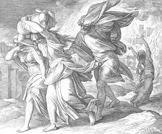 Лот и его семья оказались единственными праведниками в городе, и ангелы вывели их из обреченного на гибель Содома, запретив оглядываться.