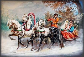 Сани весело скрипят под бубенцы.