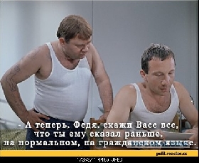 Пиля, ну не дуйся ты так, ну стареешь, ну нет прежней гибкости ума - не надо так страстно всё это сублимировать. Я ж тоже всё понимаю: и желание себя показать, и любовь к общению с такими классными людьми, как я. Я даже твою высокохудожку про срущего гуся прочитал - почитай брататься пора, лучшие подружки в детсадовской группе.