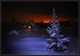 Тускло светит во тьме ночи.