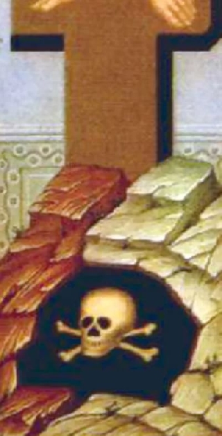 Под Крестом мерзким черепом серым.