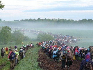 Много тысяч выходит на тропы.