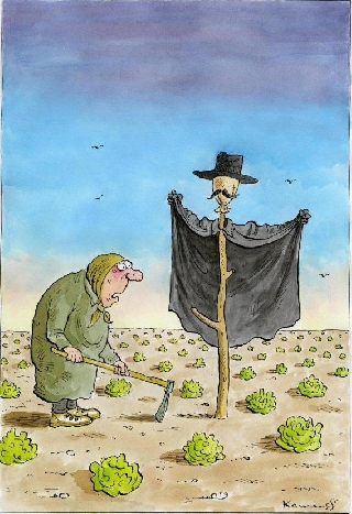 Древние мифы индейцев Майя прочно вошли в русский фольклор. Владыка жатвы со временем трансформировался в огородное пугало.