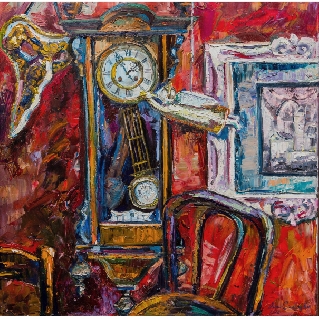Возле настенных часов громко падает стул...